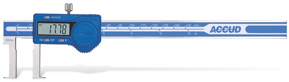 Workshop professional digital inside neck caliper with measuring range 22 - 150mm and measuring resolution 0.01mm. The jaws are 30 mm long. Designed to measure grooves.