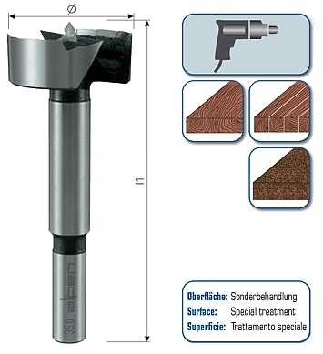 For drilling in soft and hard wood, in chipboards and fibreboards.