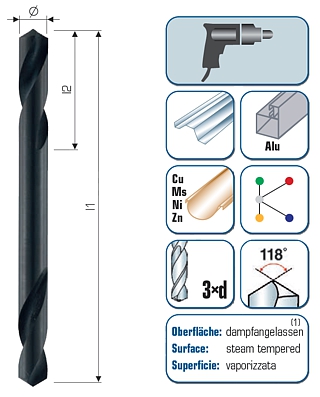 Drill with extremely sturdy construction, particularly suitable for drilling thin materials. Used in portable-handtools, mainly in body panel shops, car repair shops etc.